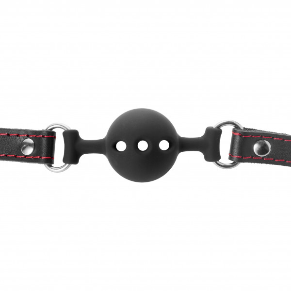 Выполнен кляп в виде шарика и имеет 3 сквозные дырочки для комфортного дыхания!