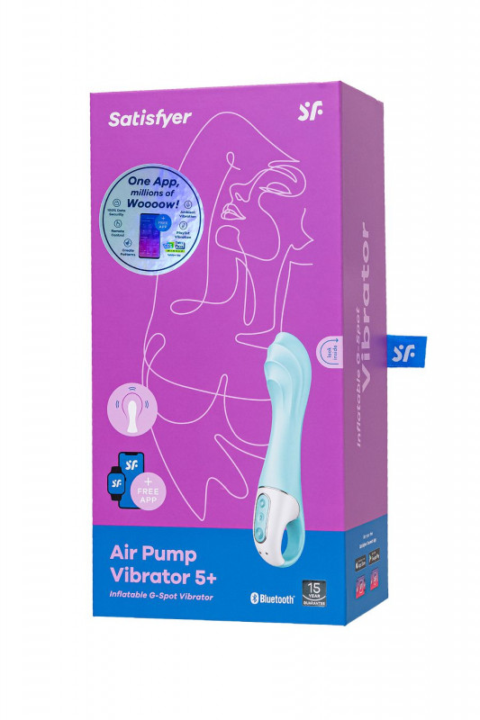Вибратор для точки G с увеличением объема "Satisfyer Air Pump Vibrator 5+" + приложение, голубой